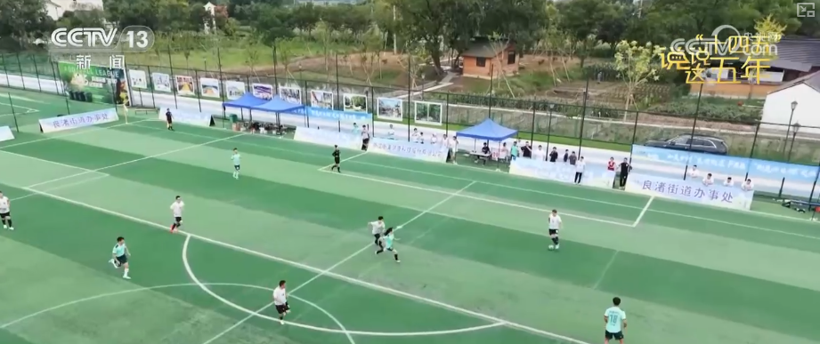 杭州市民沈一斌表示,体育场地越来越丰富,体育赛事也越来越精彩。看足球比赛,这个衣服就是三冠联赛的一个吉祥物叫“富宝宝”。这个足球场五年前是一片废弃的厂房,足球场建起来了以后,每天茶余饭后都会到这里来。以前到家以后就刷手机,但现在都会到这里来锻炼,自己身体也好了,“三高”也没有了。